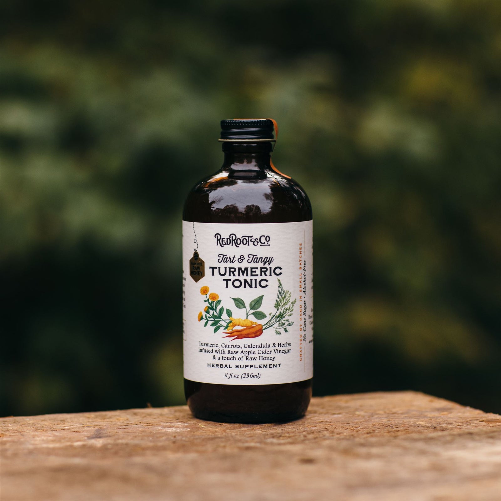 Tart & Tangy Turmeric Tonic is a nutritive health tonic full of botanical benefits. Try this simple, yet absolutely delicious recipe with Turmeric Tonic. Ingredients 1/2 a juicy Orange 1/2 oz Tart & Tangy Turmeric Tonic Instructions Using a citrus juicer, squeeze juice out of half of an Orange. This should yield around 1 ounce of juice. Add juice to a small glass and mix with ½ ounce of Turmeric Tonic. Mix gently and drink. This is tremendously refreshing and we especially like this as a quick pick-me-up.